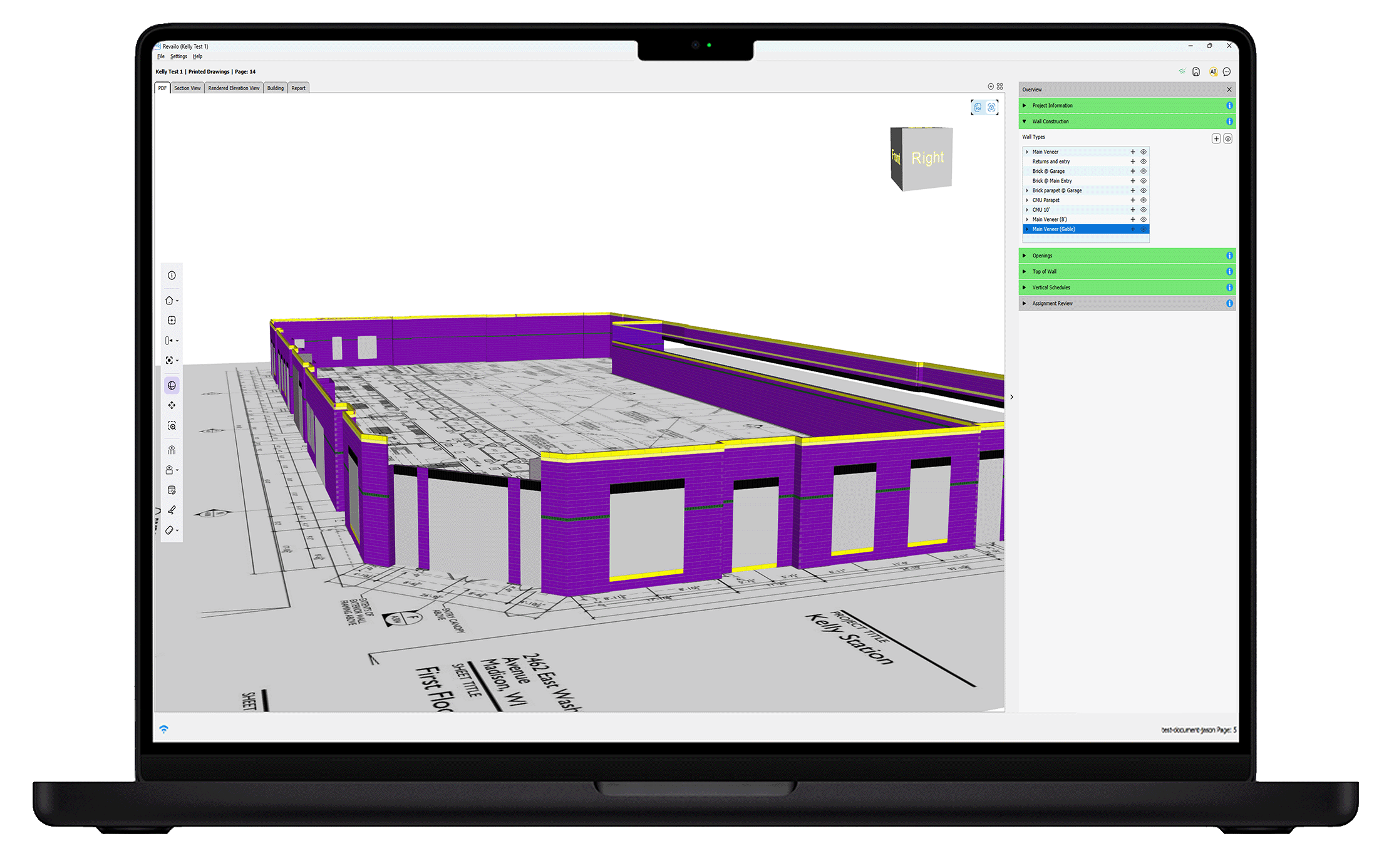 Assign assemblies in 2D for speedy batch edits or use 3D renderings for clear visuals, with optional tools like the rendered elevation tool for precise tweaks; easily update materials or assemblies to adapt to multiple plan changes during the bidding process.